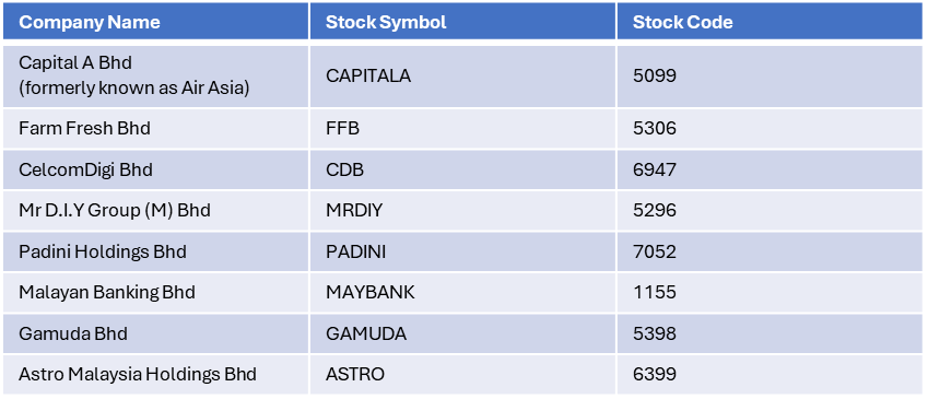 Some of the familiar brands that are listed on the Bursa Malaysia exchange;