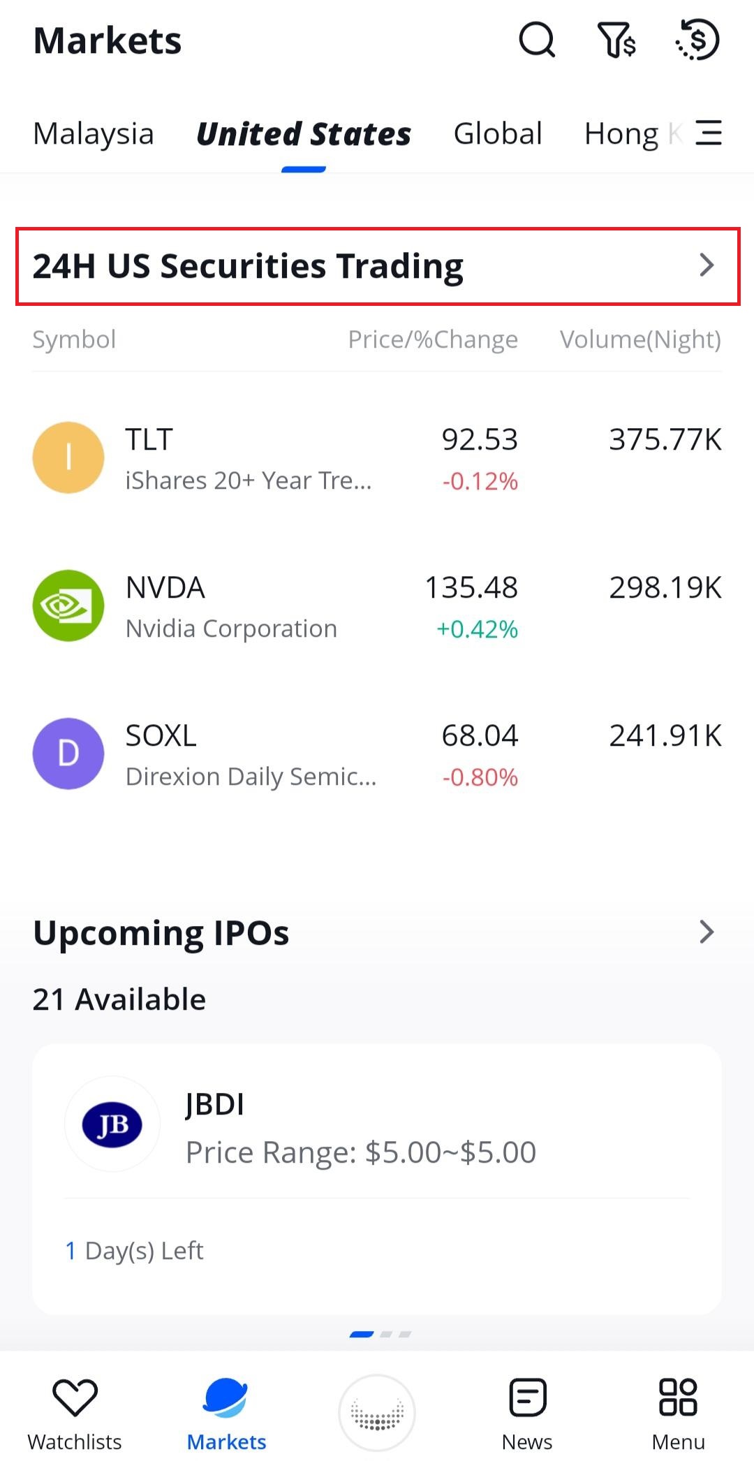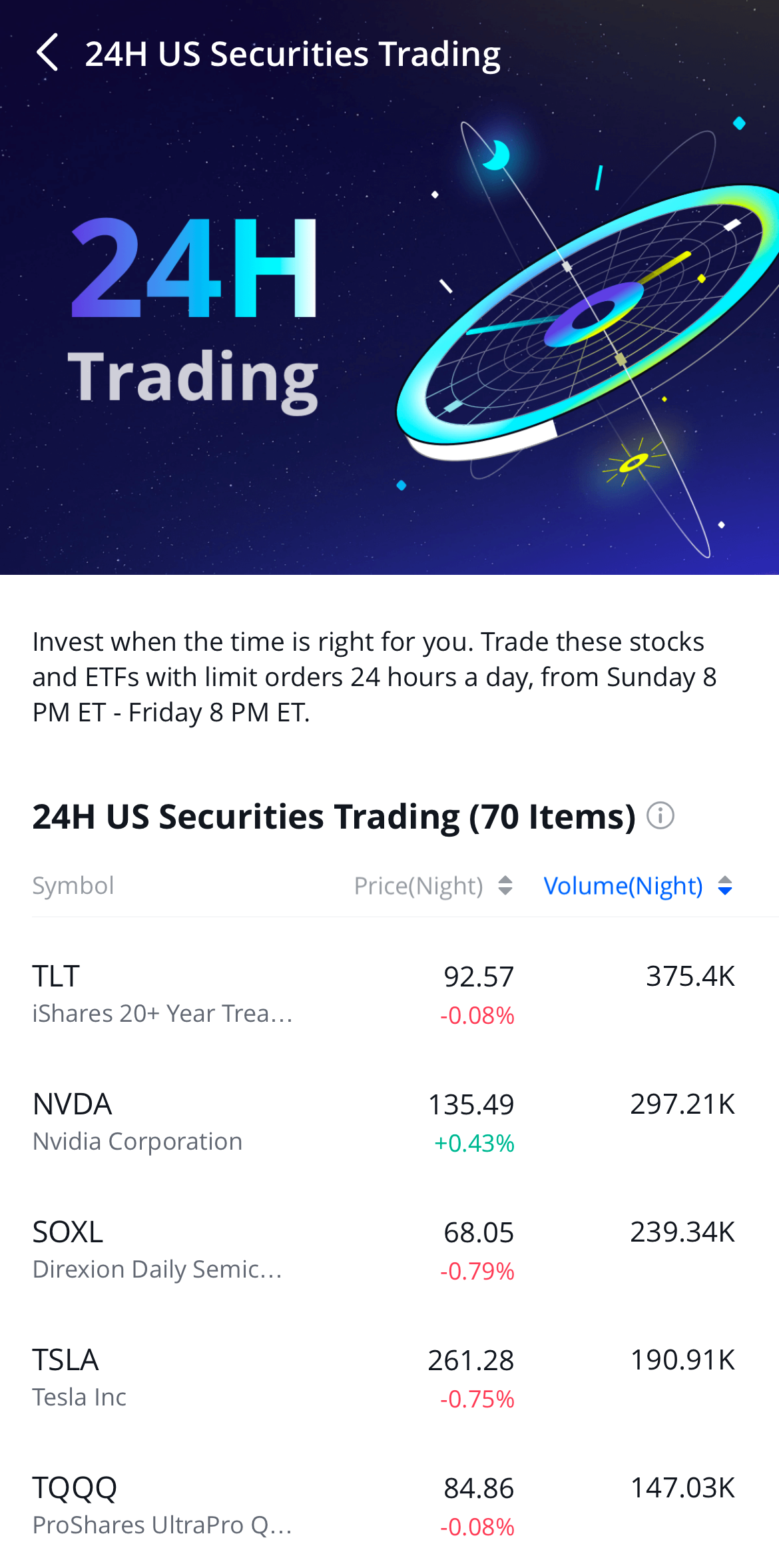 2. 24-Hour Trading feature is applicable for certain US stocks and ETFs only.