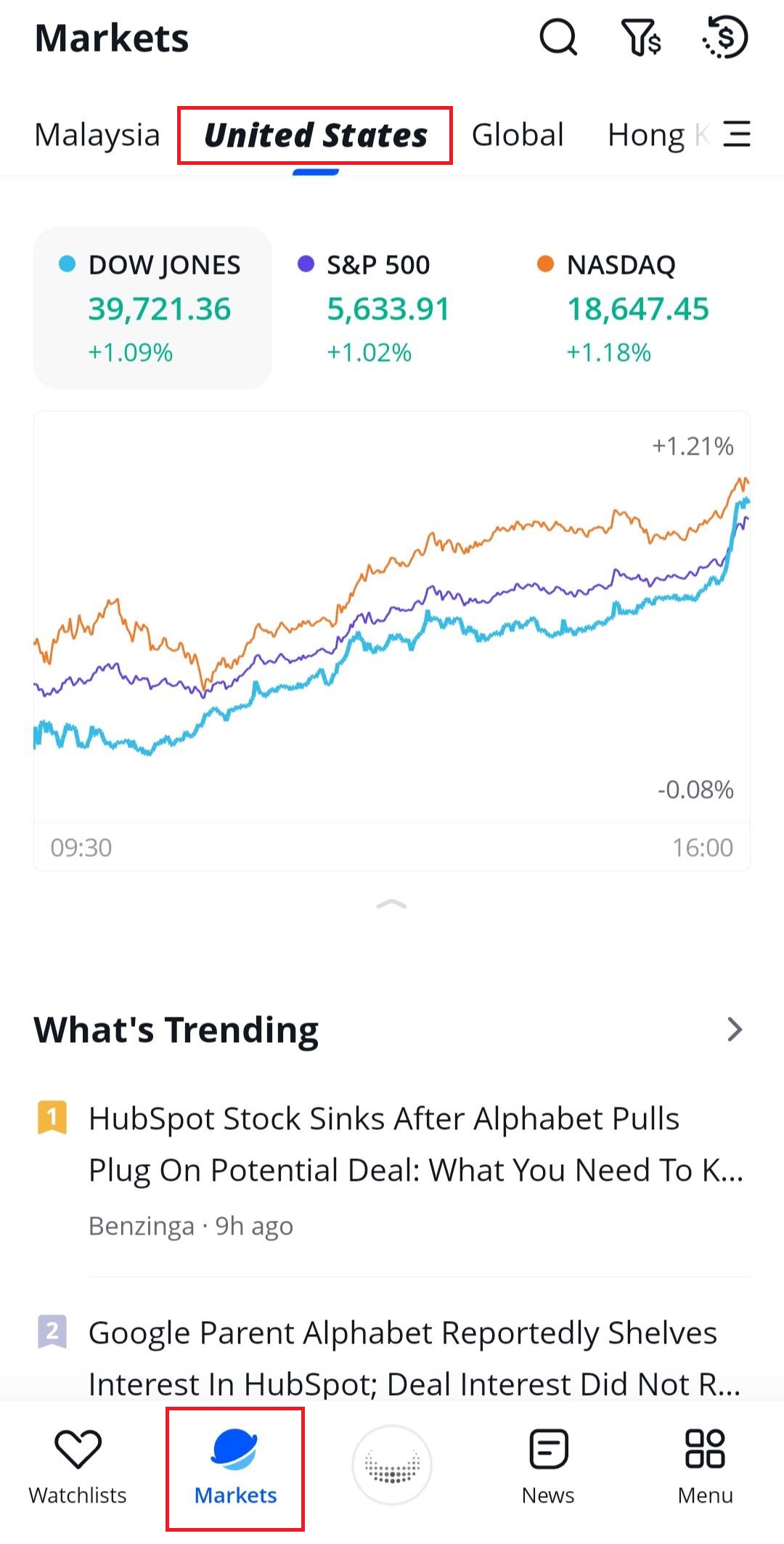 Step 1 – Tap on Markets and United States