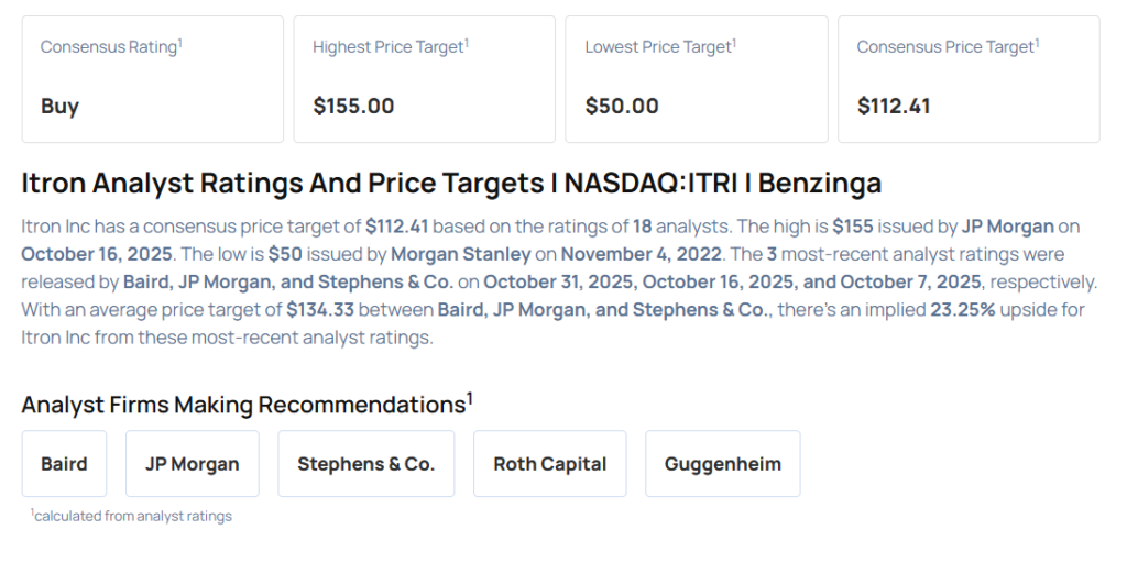 Baird analyst Ben Kallo downgraded Itron, Inc. (NASDAQ:ITRI) from Outperform to Neutral and lowered the price target from $137 to $118. Itron closed at $108.99 on Thursday. See how other analysts view this stock.